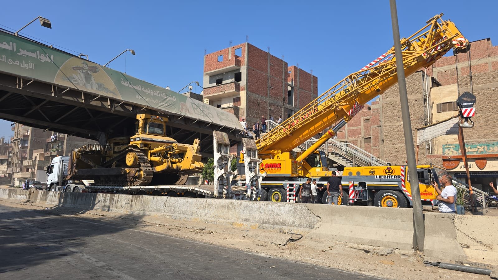 محافظ القليوبية " يتابع تحرك كوبري مشاة بطوخ إثر اصطدام بلدوزر