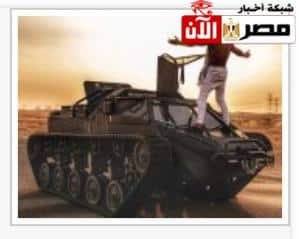 ونشر صورة جديدة أيضا وهو يقف على مدرعة من كواليس تصوير الكليب،